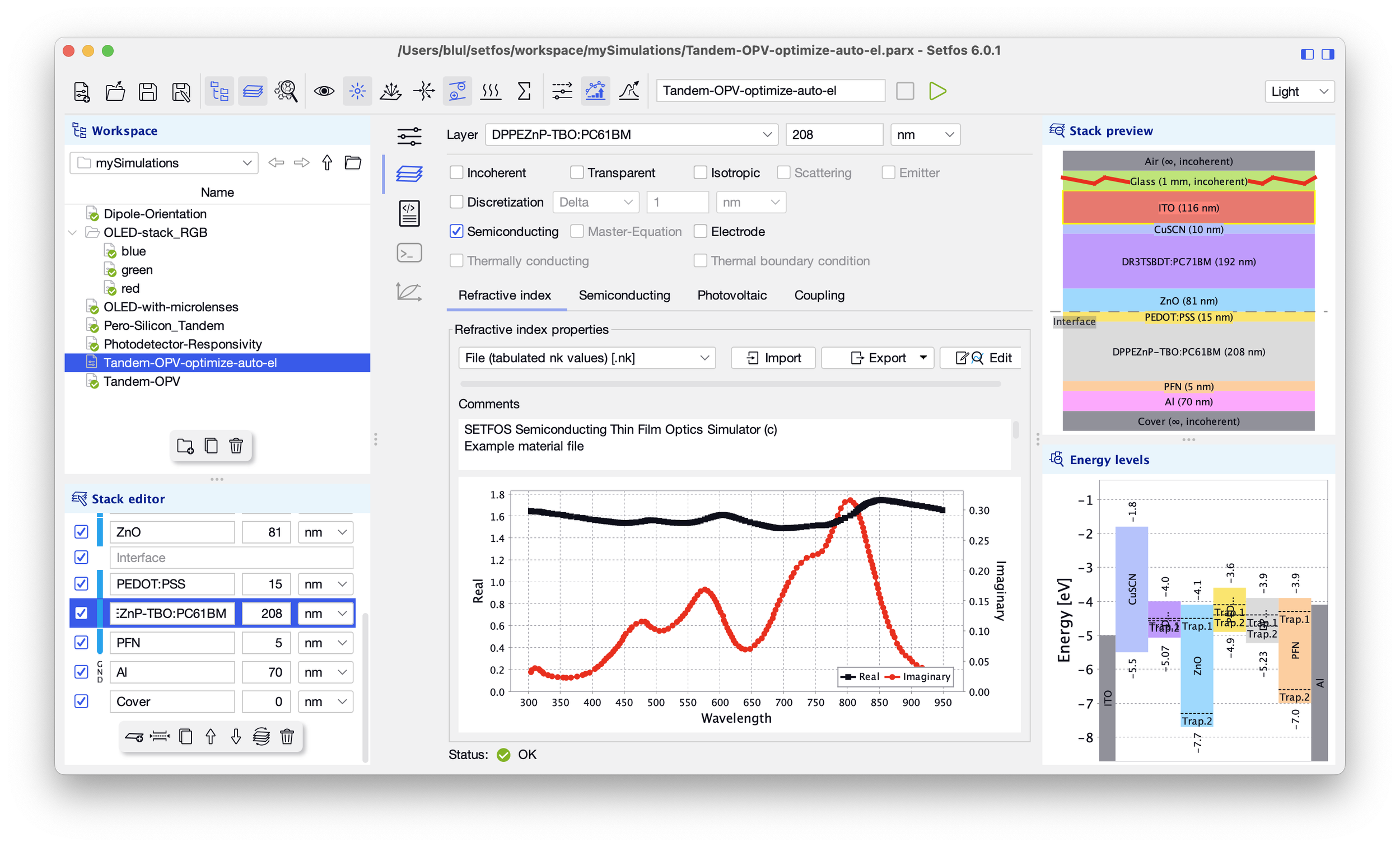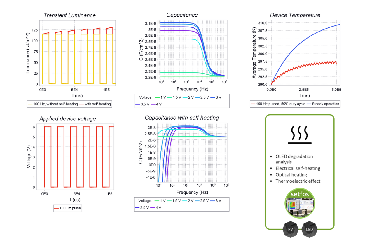 Setfos 6.0 is a major update focused on advanced device physics for OLEDs, perovskite solar cells, and photodetectors. A new thermal module, extended modeling options, and a streamlined interface will help you achieve reliable results faster.