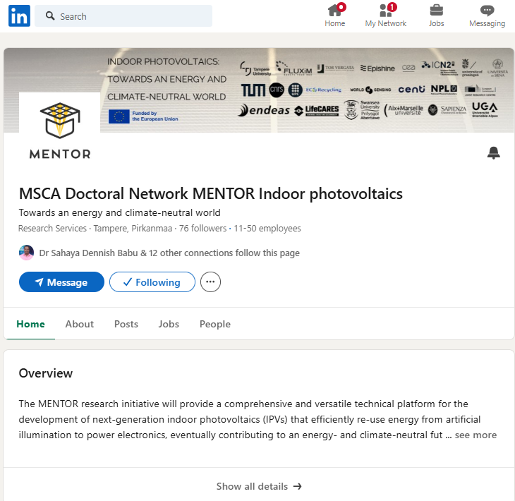 If you are interested in the progress of indoor photovoltaics (IPVs) and their role in powering IoT devices sustainably, we have great news! You can now follow the MENTOR Project on LinkedIn for the latest updates.