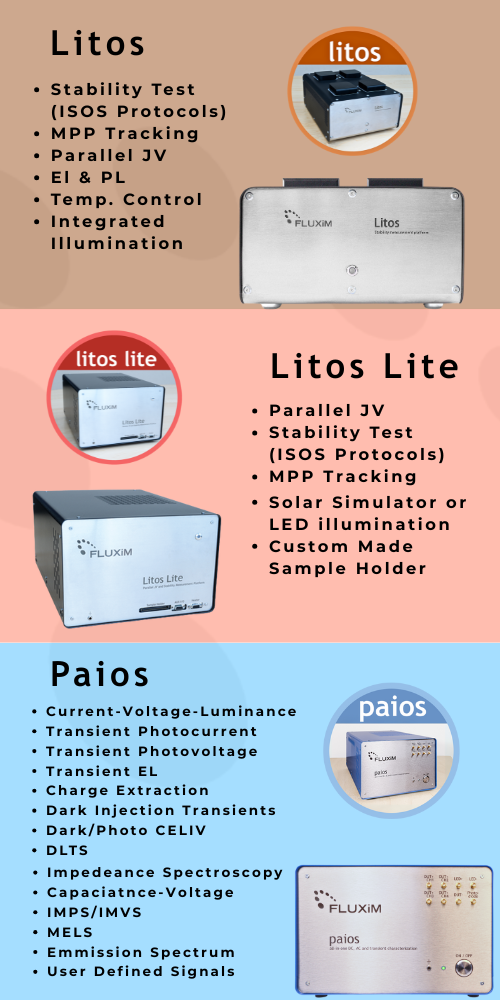 FLUXiM developed 3 different instruments to assess the stability of Perovskite Solar Cells
