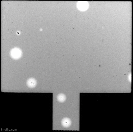 Figure 9. PL image of three pixels at open circuit, where the centre pixel experienced a reverse-bias stressing at -4 V for 5 minutes.