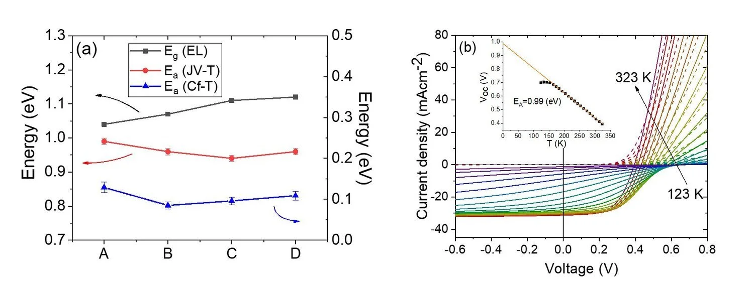 After quantifying the losses, the combination of capacitance-voltage (CV), temperature-dependent voltage characteristics (JV-T), and capacitance-frequency (Cf-T) measurements are essential to identify the recombination mechanisms.